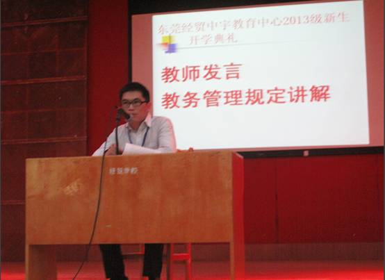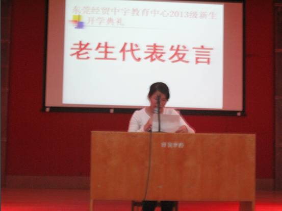 东莞经贸中宇教育中心田主任为我们致辞讲话。